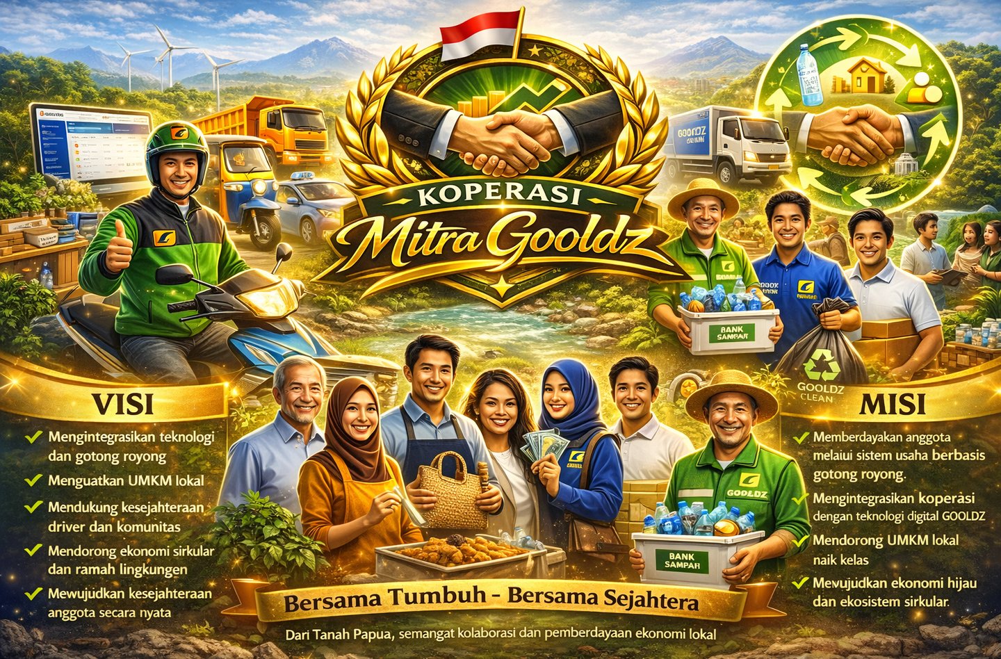 Koperasi Mitra Gooldz lahir dari semangat kolaborasi dan pemberdayaan ekonomi lokal di Tanah Papua. Berawal dari inisiatif membangun ekosistem digital melalui aplikasi GOOLDZ, kami melihat kebutuhan nyata akan wadah koperasi yang mampu memperkuat pengemudi, pelaku UMKM, komunitas lingkungan, dan masyarakat umum dalam satu sistem yang terintegrasi.